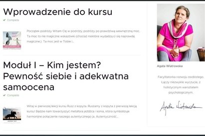W każdym z modułów jest nagranie video oraz audio (podcast), gdzie Agata Wiatrowska przedstawia zagadnienie i pokazuje, co jest ważne w tym obszarze.